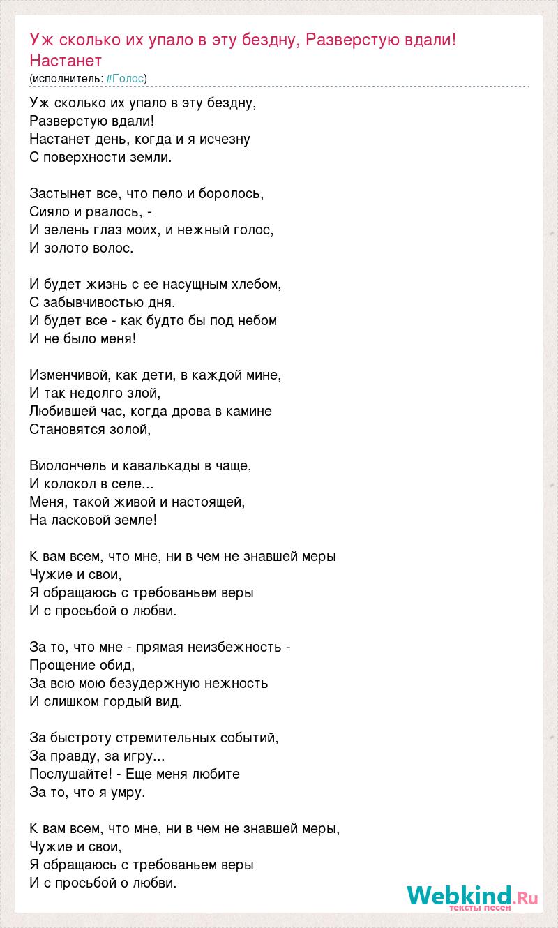 Главная→Исполнители→#Голос→Уж сколько их упало в эту бездну, Разверстую вдали! Настанет день, когда и я исч