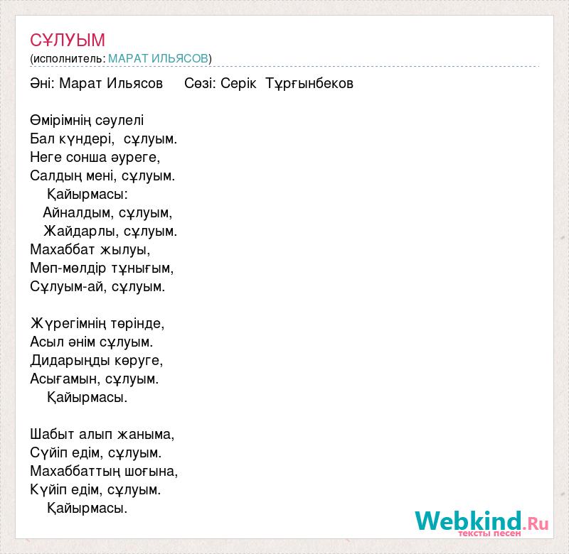 А как ты думаешь, о чем песня "СҰЛУЫМ" ?