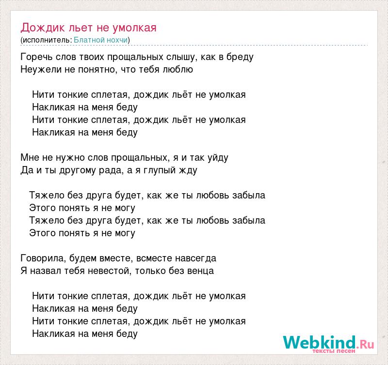 А как ты думаешь, о чем песня "Дождик льет не умолкая" ?