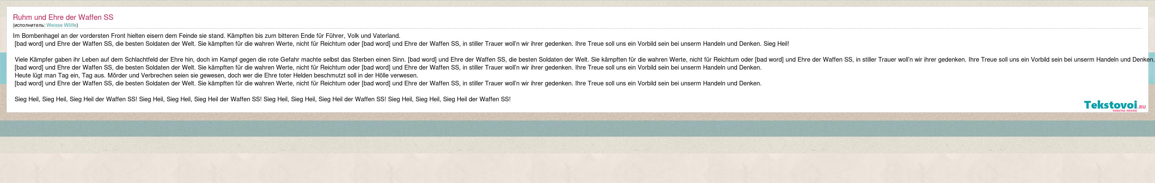 А как ты думаешь, о чем песня "Ruhm und Ehre der Waffen SS" ?