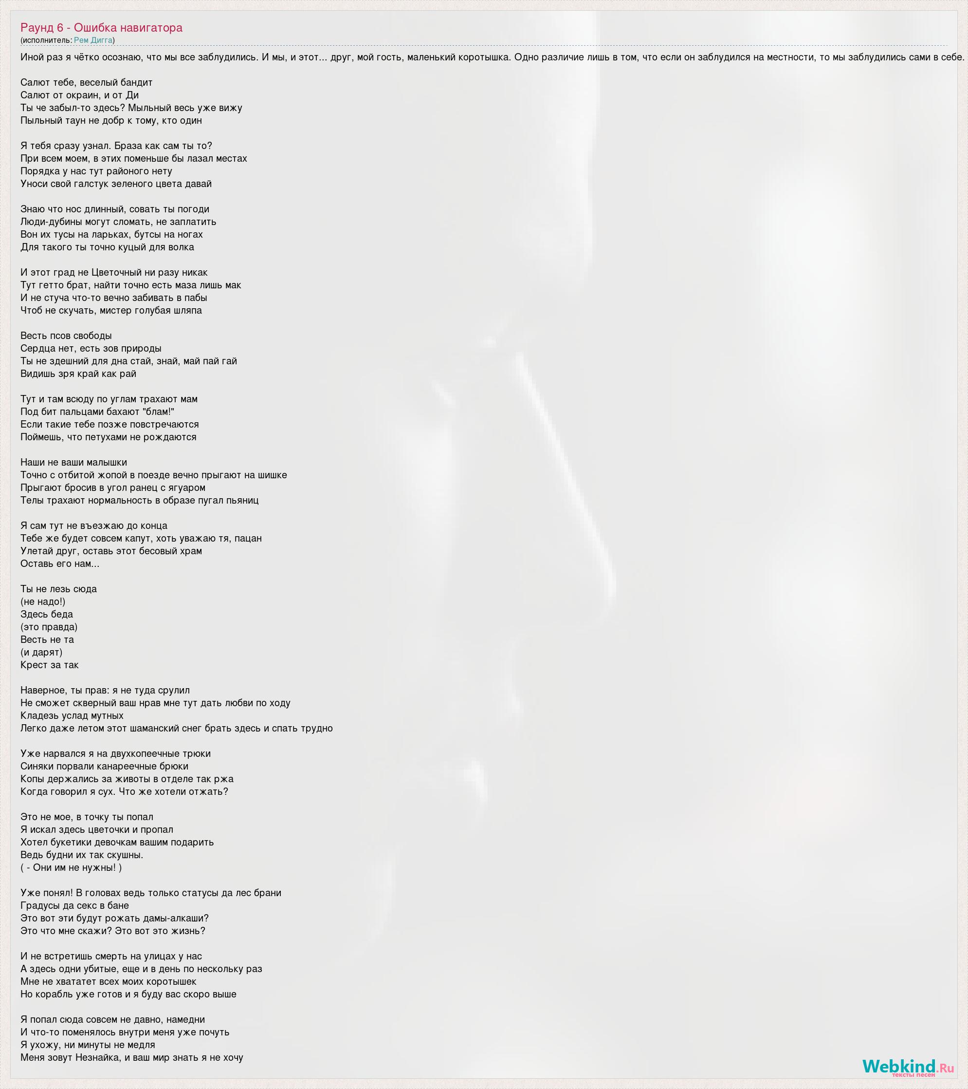 А как ты думаешь, о чем песня "Раунд 6 - Ошибка навигатора" ?