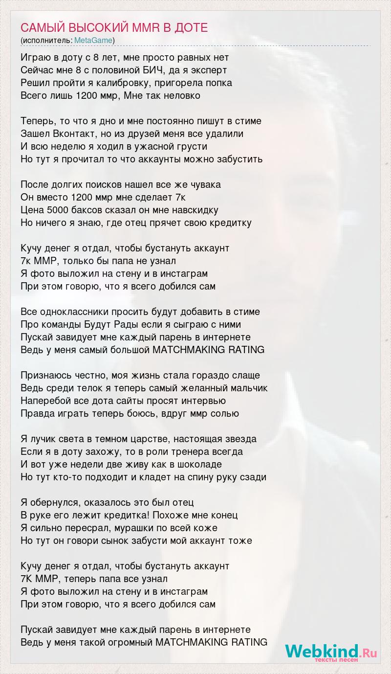 А как ты думаешь, о чем песня "САМЫЙ ВЫСОКИЙ MMR В ДОТЕ" ?