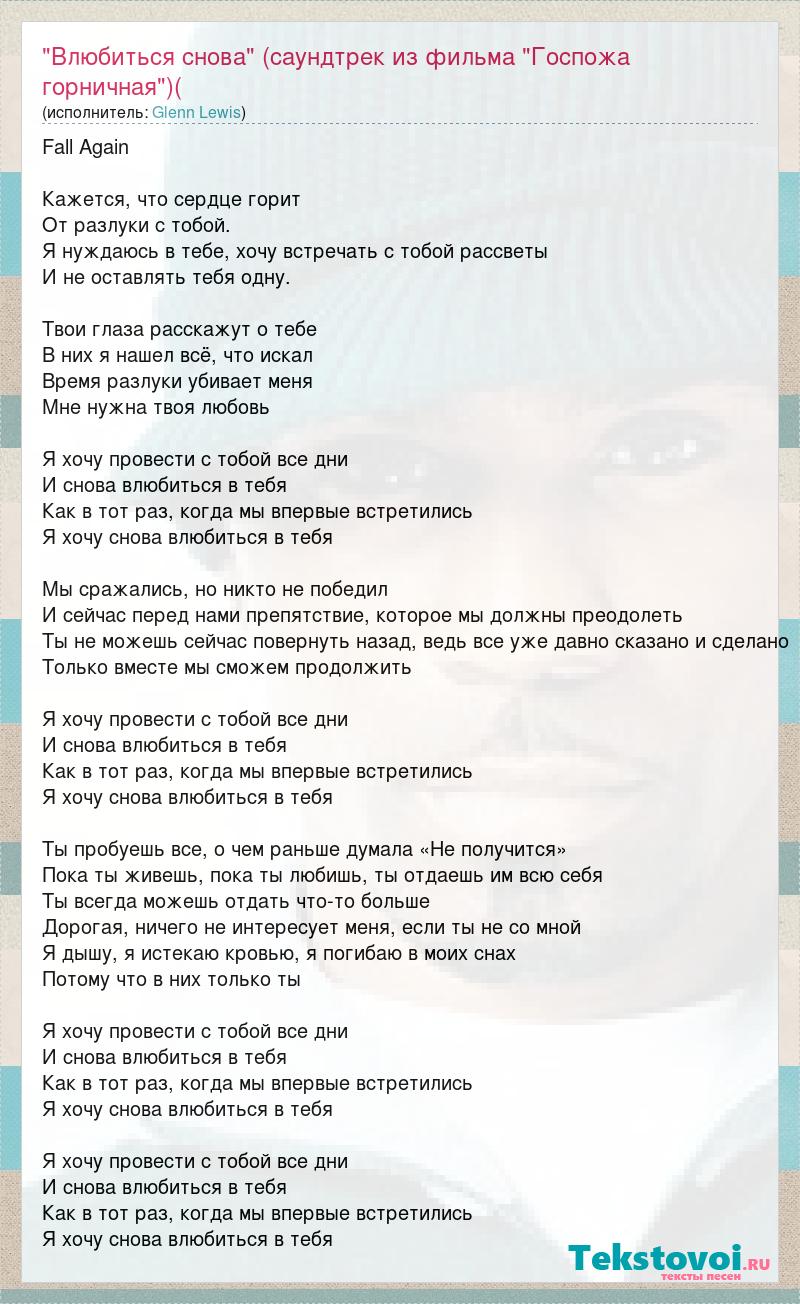 Главная→Исполнители→Glenn Lewis→"Влюбиться снова" (саундтрек из фильма "Госпожа горничная")( Мне нужно, чтобы ты