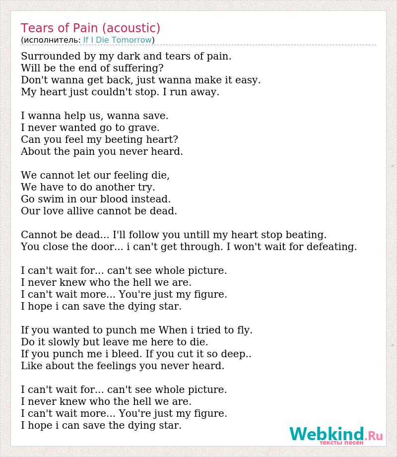 А как ты думаешь, о чем песня "Tears of Pain (acoustic)" ?