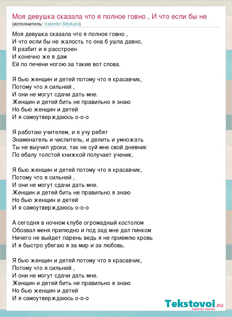 Главная→Исполнители→Valentin Strykalo→Моя девушка сказала что я полное говно , И что если бы не жалость то
