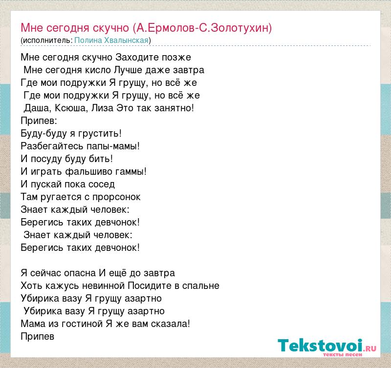 Мне сегодня скучно (А.Ермолов-С.Золотухин)