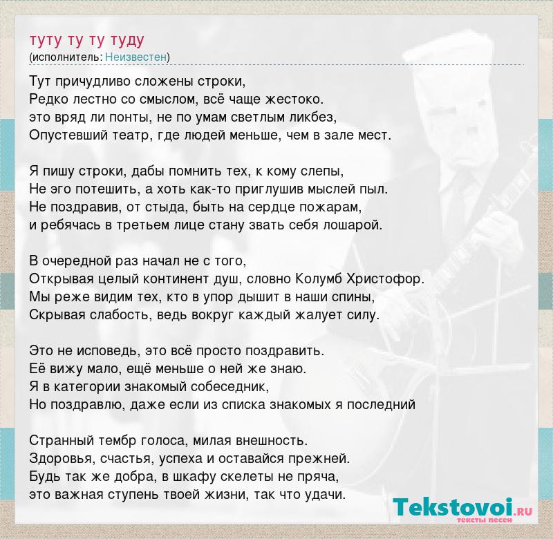 А как ты думаешь, о чем песня "Туту ту ту туду" ?