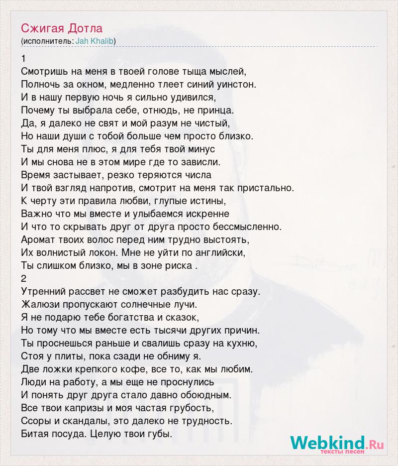 1 Смотришь на меня в твоей голове тыща мыслей, Полночь за окном, медленно тлеет синий уинстон. И в нашу первую ночь я сильно удивился, Почему ты выбрала себе, отнюдь, не принца. Да, я далеко не свят и мой разум не чистый, Но наши души с тобой больше чем просто близко. Ты для меня плюс, я для тебя твой минус И мы снова не в этом мире где то зависли. Время застывает, резко теряются числа И твой взгляд напротив, смотрит на меня так пристально. К черту эти правила любви, глупые истины, Важно что мы вместе и улыбаемся искренне И что то скрывать друг от друга просто бессмысленно. Аромат твоих волос перед ним трудно выстоять, Их волнистый локон. Мне не уйти по английски, Ты слишком близко, мы в зоне риска . 2 Утренний рассвет не сможет разбудить нас сразу. Жалюзи пропускают солнечные лучи. Я не подарю тебе богатства и сказок, Но тому что мы вместе есть тысячи других причин. Ты проснешься раньше и свалишь сразу на кухню, Стоя у плиты, пока сзади не обниму я. Две ложки крепкого кофе, все то, как мы любим. Люди на работу, а мы еще не проснулись И понять друг друга стало давно обоюдным. Все твои капризы и моя частая грубость, Ссоры и скандалы, это далеко не трудность. Битая посуда. Целую твои губы.