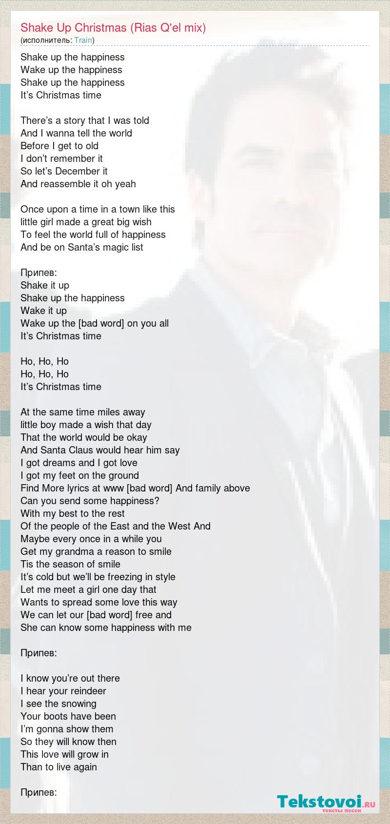 Shake up the happiness Wake up the happiness Shake up the happiness It’s Christmas time There’s a story that I was told And I wanna tell the world Before I get to old I don’t remember it So let’s December it And reassemble it oh yeah Once upon a time in a town like this little girl made a great big wish To feel the world full of happiness And be on Santa’s magic list Припев: Shake it up Shake up the happiness Wake it up Wake up the happiness Come on you all It’s Christmas time Ho, Ho, Ho Ho, Ho, Ho It’s Christmas time At the same time miles away little boy made a wish that day That the world would be okay And Santa Claus would hear him say I got dreams and I got love I got my feet on the ground Find More lyrics at www [bad word] And family above Can you send some happiness? With my best to the rest Of the people of the East and the West And Maybe every once in a while you Get my grandma a reason to smile Tis the season of smile It’s cold but we’ll be freezing in style Let me meet a girl one day that Wants to spread some love this way We can let our souls run free and She can know some happiness with me Припев: I know you’re out there I hear your reindeer I see the snowing Your boots have been I’m gonna show them So they will know then This love will grow in Than to live again Припев:
