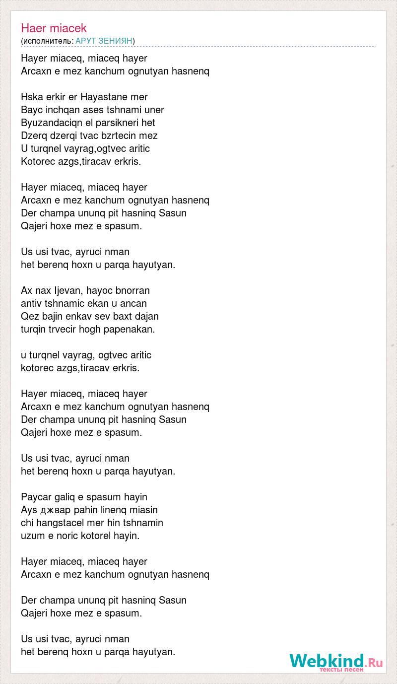 Hayer miaceq, miaceq hayer Arcaxn e mez kanchum ognutyan hasnenq Hska erkir er Hayastane mer Bayc inchqan ases tshnami uner Byuzandaciqn el parsikneri het Dzerq dzerqi tvac bzrtecin mez U turqnel vayrag,ogtvec aritic Kotorec azgs,tiracav erkris. Hayer miaceq, miaceq hayer Arcaxn e mez kanchum ognutyan hasnenq Der champa ununq pit hasninq Sasun Qajeri hoxe mez e spasum. Us usi tvac, ayruci nman het berenq hoxn u parqa hayutyan. Ax nax Ijevan, hayoc bnorran antiv tshnamic ekan u ancan Qez bajin enkav sev baxt dajan turqin trvecir hogh papenakan. u turqnel vayrag, ogtvec aritic kotorec azgs,tiracav erkris. Hayer miaceq, miaceq hayer Arcaxn e mez kanchum ognutyan hasnenq Der champa ununq pit hasninq Sasun Qajeri hoxe mez e spasum. Us usi tvac, ayruci nman het berenq hoxn u parqa hayutyan. Paycar galiq e spasum hayin Ays джвар pahin linenq miasin chi hangstacel mer hin tshnamin uzum e noric kotorel hayin. Hayer miaceq, miaceq hayer Arcaxn e mez kanchum ognutyan hasnenq Der champa ununq pit hasninq Sasun Qajeri hoxe mez e spasum. Us usi tvac, ayruci nman het berenq hoxn u parqa hayutyan.