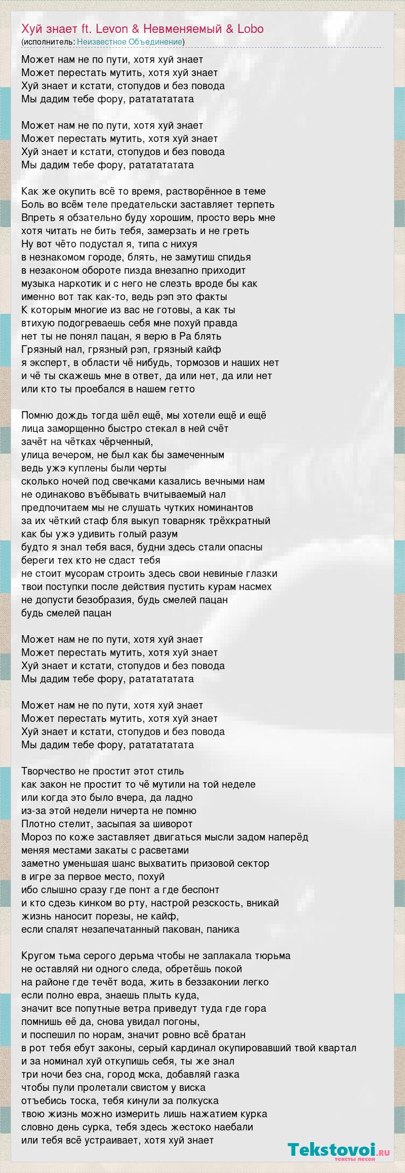 А как ты думаешь, о чем песня "Хуй знает ft. Levon & Невменяемый & Lobo" ?