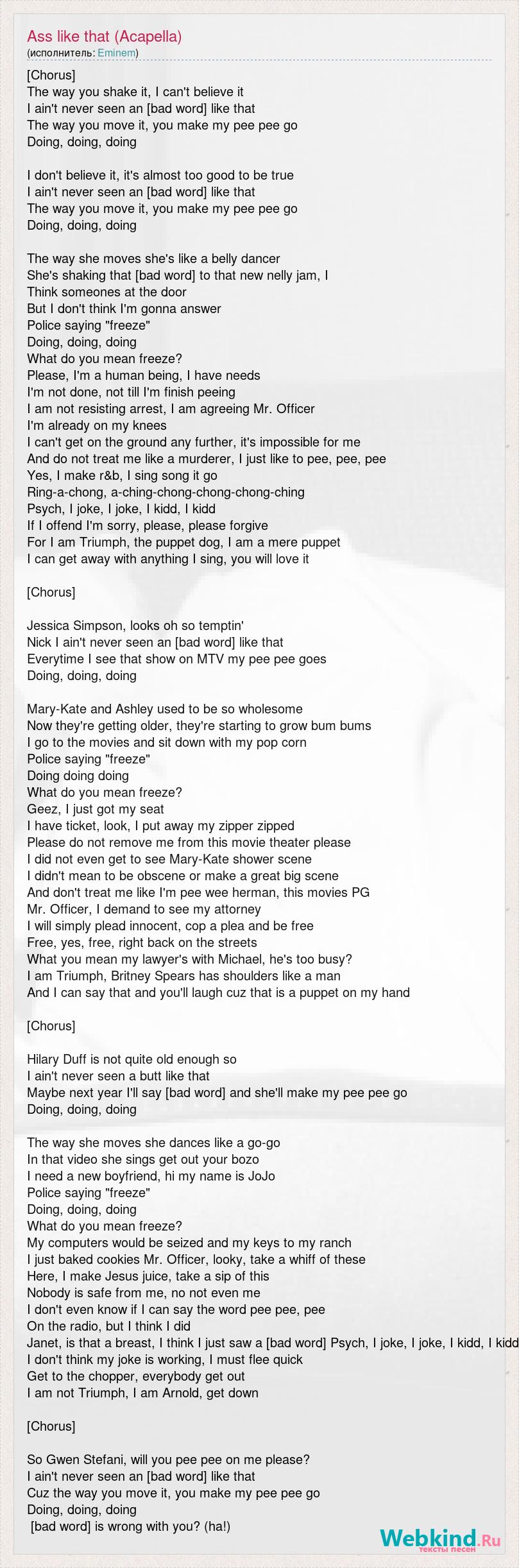 А как ты думаешь, о чем песня "Ass like that (Acapella)" ?