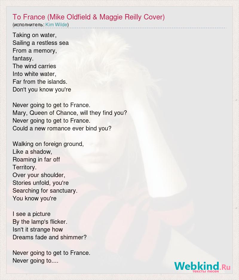 А как ты думаешь, о чем песня "To France (Mike Oldfield & Maggie Reilly Cover)" ?