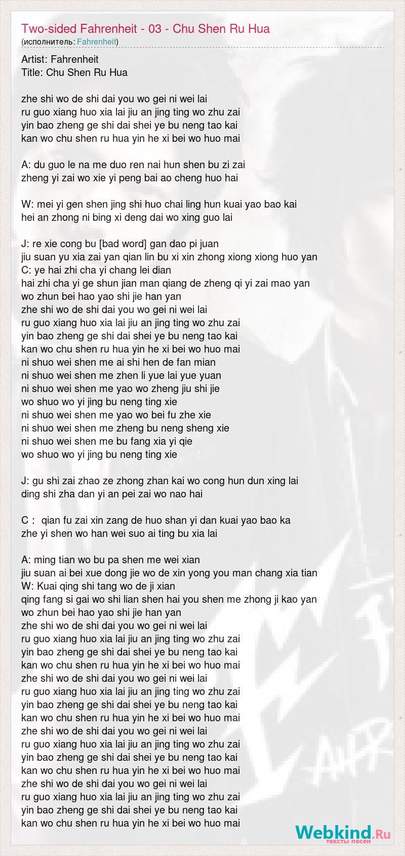А как ты думаешь, о чем песня "Two-sided Fahrenheit - 03 - Chu Shen Ru Hua" ?