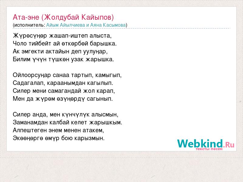 А как ты думаешь, о чем песня "Ата-эне (Жолдубай Кайыпов)" ?