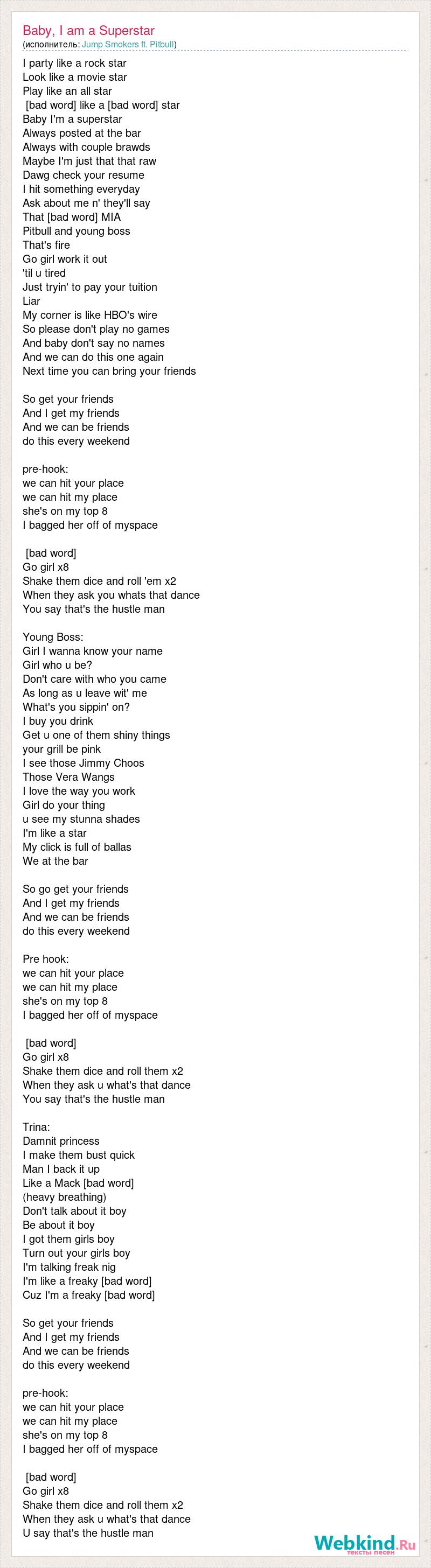 А как ты думаешь, о чем песня "Baby, I am a Superstar" ?