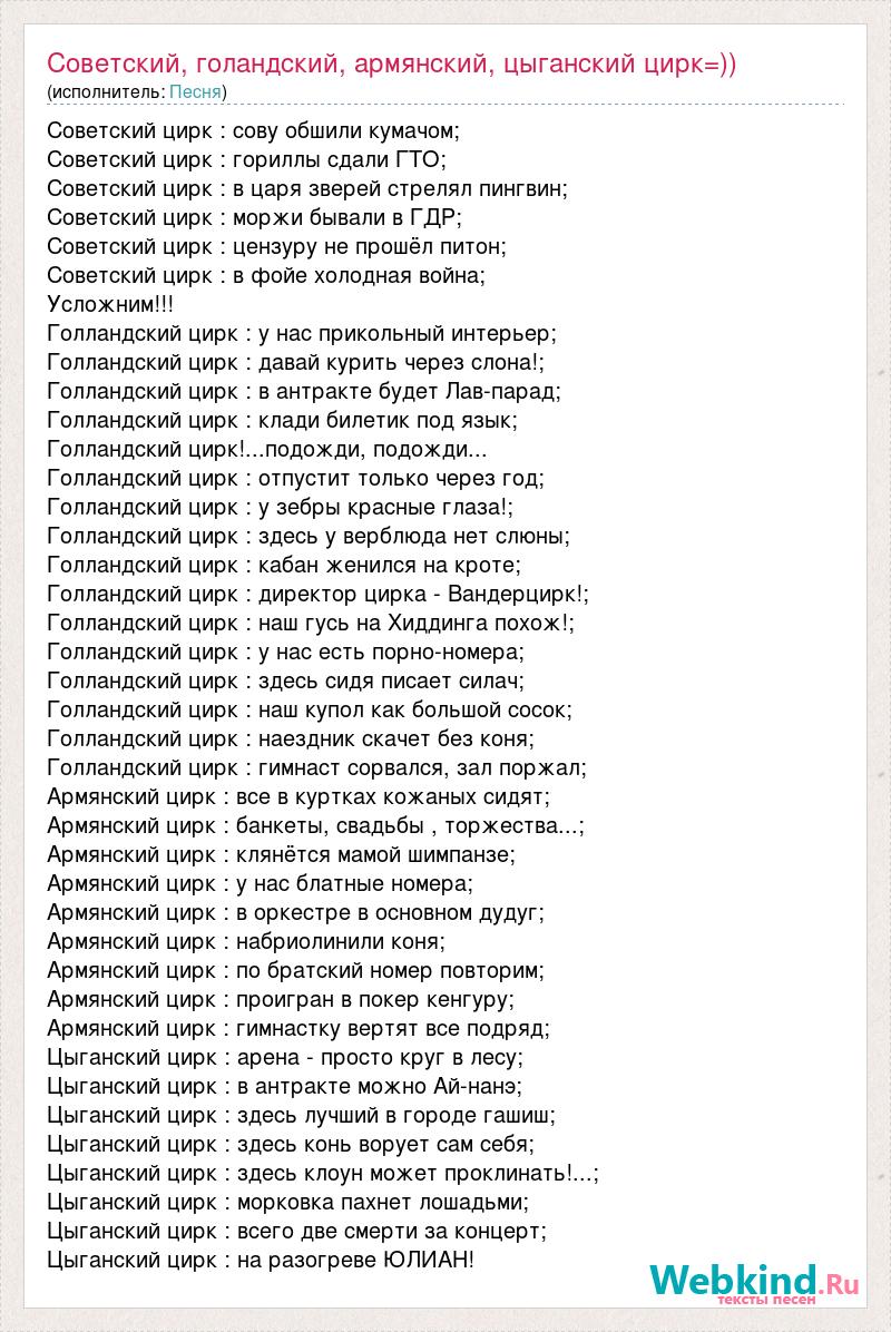 А как ты думаешь, о чем песня "Советский, голандский, армянский, цыганский цирк=))" ?