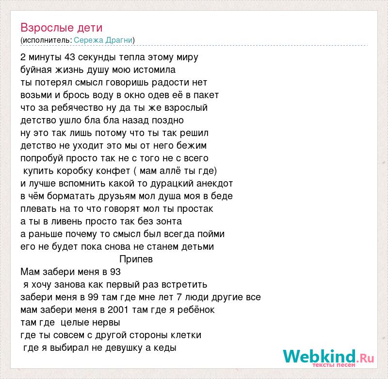 А как ты думаешь, о чем песня "Взрослые дети" ?