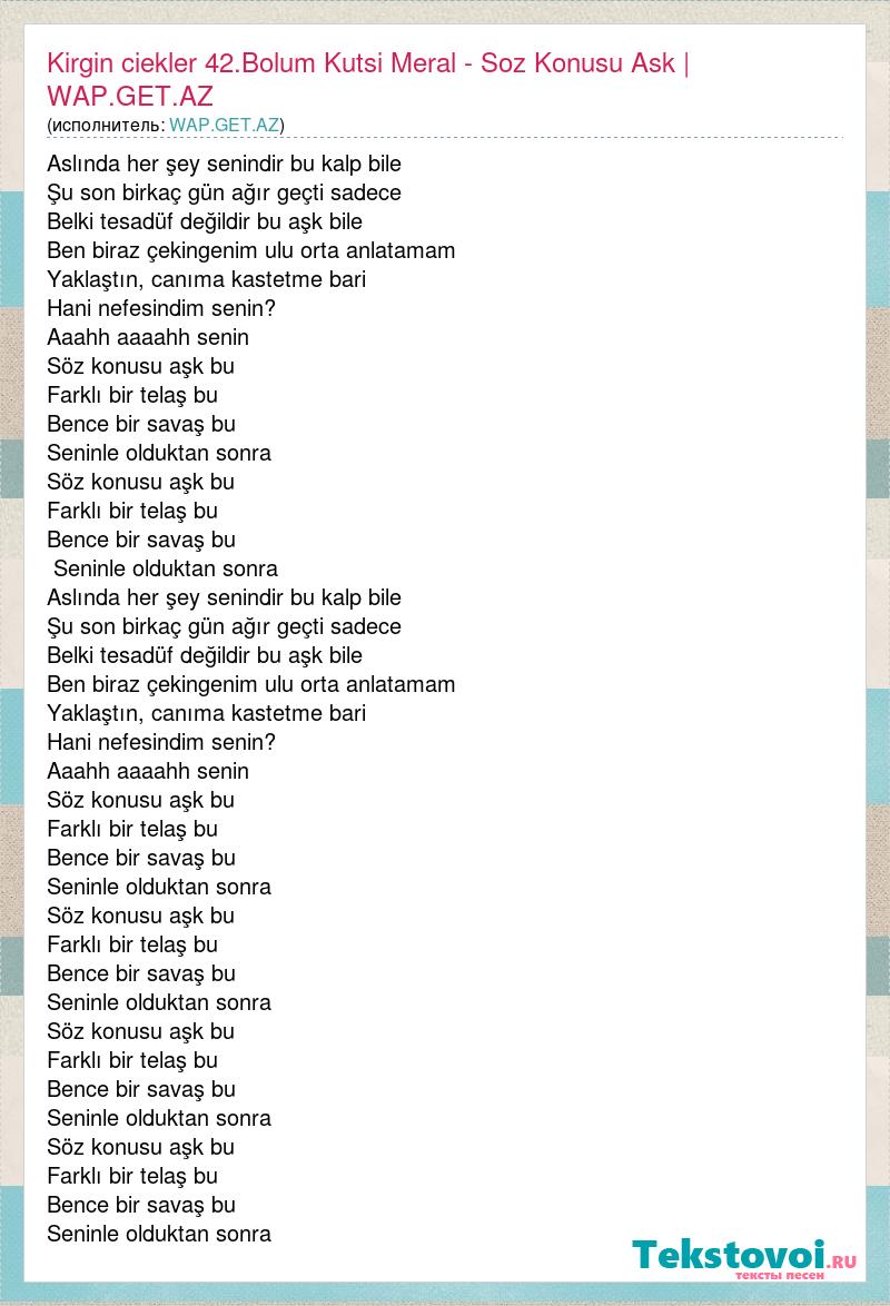 А как ты думаешь, о чем песня "Kirgin ciekler 42.Bolum Kutsi Meral - Soz Konusu Ask | WAP.GET.AZ" ?