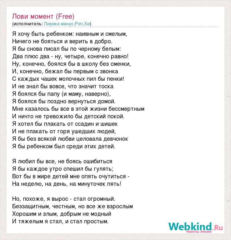 А как ты думаешь, о чем песня "Лови момент (Free)" ?