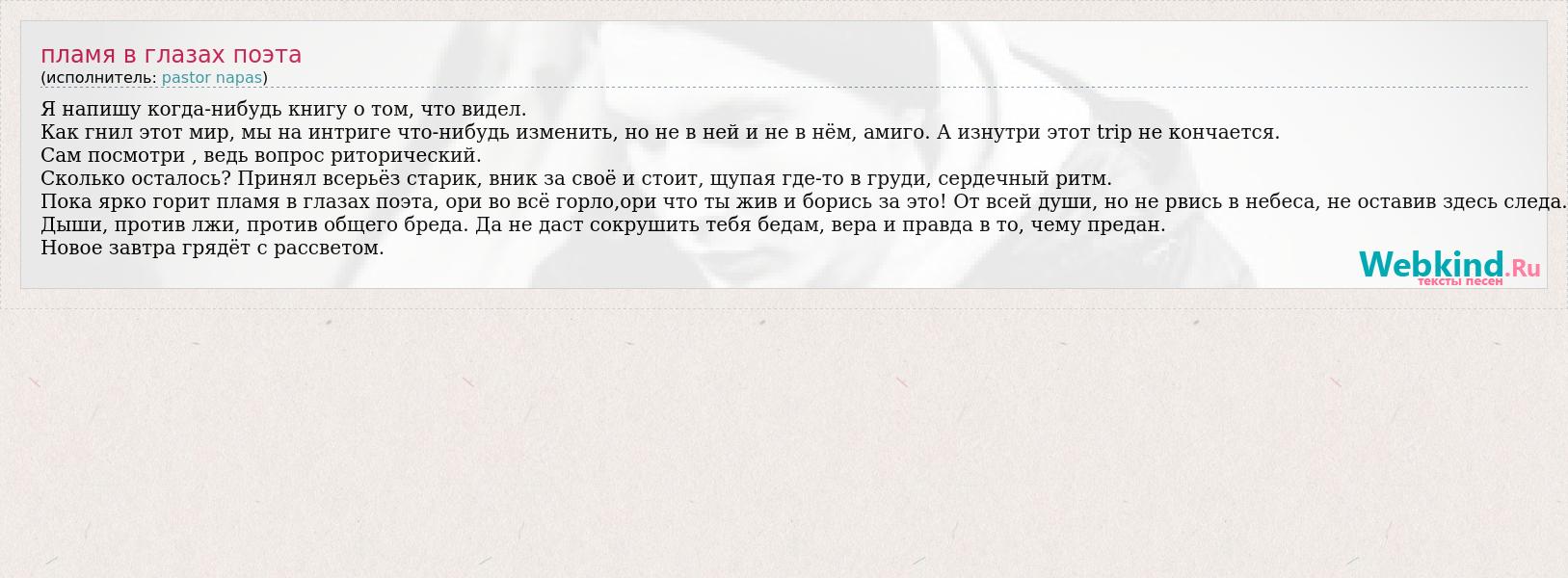 А как ты думаешь, о чем песня "Пламя в глазах поэта" ?