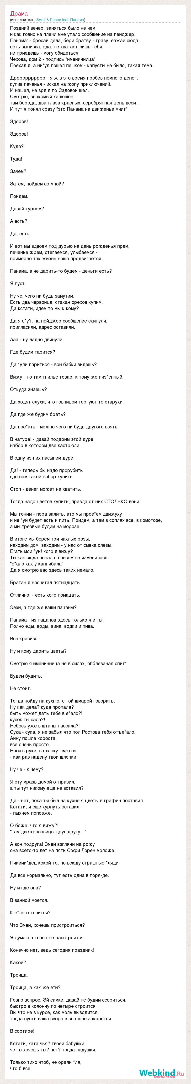 Поздний вечер, заняться было не чем и как говно на плечи мне упало сообщение на пейджер. Панама: - бросай дела, бери братву - траву, езжай сюда, есть выпивка, еда. не хватает лишь тебя, ни приедешь - могу обидеться Чехова, дом 2 - подпись "именинница" Поехал я, а ни*уя пошел пешком - капусты не было, такая тема. Дррррррррррр - я ж в это время пробив немного денег, купив печенья - искал на жопу приключений. И нашел, не зря я по Садовой шел. Смотрю, знакомый капюшон, там борода, два глаза красных, серебрянная цепь весит. И тут я понял сразу "это Панама на движенье мчит" Здоров! Здоров! Куда? Туда! Зачем? Затем, пойдем со мной? Пойдем. Давай курнем? А есть? Да, есть. И вот мы вдвоем под дурью на день рожденья прем, печенье жрем, стегаемся, улыбаемся - примерно так жизнь наша продвигается. Панама, а че дарить-то будем - деньги есть? Я пуст. Ну че, чего ни будь замутим. Есть два червонца, стакан орехов купим. Да кстати, идем то мы к кому? Да я е*у?, на пейджер сообщение скинули, пригласили, адрес оставили. Ааа - ну ладно двинули. Где будим тарится? Да *ули париться - вон бабки видешь? Вижу - но там гнилье товар, к тому же пиз*енный. Откуда знаешь? Да ходят слухи, что говницом торгуют те старухи. Да где же будим брать? Да пое*ать - можно чего ни будь другого взять. В натуре! - давай подарим этой дуре набор в котором две кастрюли. В одну из них насыпим дури. Да! - теперь бы надо прорубить где нам такой набор купить Стоп - денег может не хватить. Тогда надо цветов купить, правда от них СТОЛЬКО вони. Мы гоним - пора валить, ато мы прое*ем движуху и не *уй будет есть и пить. Придем, а там в соплях все, в комотозе, а мы трезвые будим на морозе. В итоге мы берем три чахлых розы, находим дом, заходим - у нас от смеха слезы. Е*ать мой *уй! кого я вижу? Ты как сюда попала, совсем не изменилась "е*ало как у каннибала" Да я смотрю вас здесь таких немало. Братан я насчитал пятнадцать Отлично! - есть кого помацать. Эээй, а где же ваши пацаны? Панама - из пацанов здесь только я и ты. Полно еды, воды, вина, водки и пива. Все красиво. Ну и кому дарить цветы? Смотрю я именинница не в силах, обблеваная спит" Будем будить. Не стоит. Тогда пойду на кухню, с той шмарой говорить. Ну как дела? куда пропала? быть может дать тебе в е*ало?! кусок ты сала?! Небось уже в штаны нассала?! Сука - сука, я не забыл что пол Ростова тебя отъе*ало. Анну пошла короста, все очень просто. Ноги в руки, в охапку шмотки - как раз надену твои шлепки Ну че - к чему? Я эту мразь домой отправил, а ты тут никому еще не вставил? Да - нет, пока ты был на кухне я цветы в графин поставил. Кстати, я еще курнуть оставил - пыхнем попозже. О боже, что я вижу?! "там две красавицы друг другу..." А вон подруга! Змей взгляни на рожу она всего-то лет на пять Софи Лорен моложе. Пиииии*дец кокой-то, по всюду страшные *ляди. Да все нормально, тут есть одна в поря-де. Ну и где она? В ванной моется. К е*ле готовится? Что Змей, хочешь пристроиться? Я думаю что она не расстроится Конечно нет, ведь сегодня праздник! Какой? Троица. Троица, а как же эти? Говно вопрос. Эй самки, давай не будим ссориться, быстро в колонну по четыре строится Вы что не в курсе, как моль выводится, тогда пусть ваша свора в спальне закроется. В сортире! Кстати, хата чья? твоей бабушки, че-то хочешь ты? нет? тогда ладушки. Только тихо чтоб, не орали *ля, что б все
