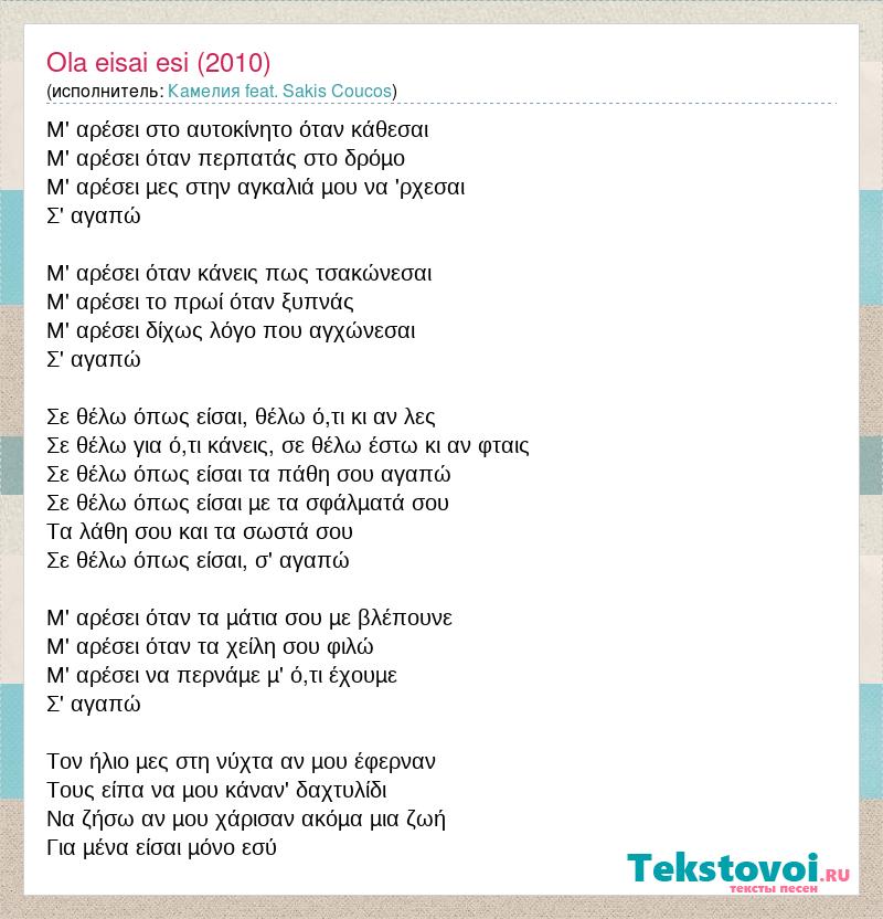 А как ты думаешь, о чем песня "Ola eisai esi (2010)" ?