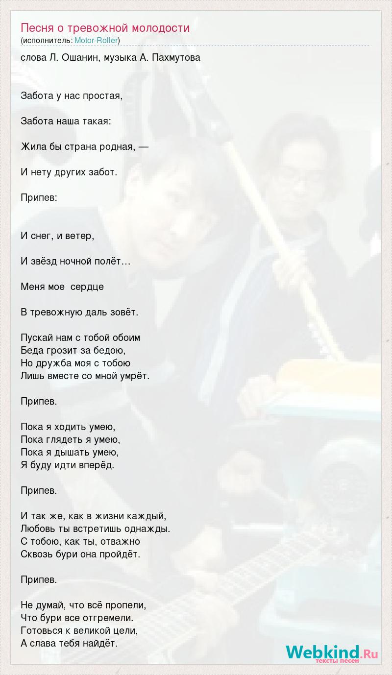 А как ты думаешь, о чем песня "Песня о тревожной молодости" ?