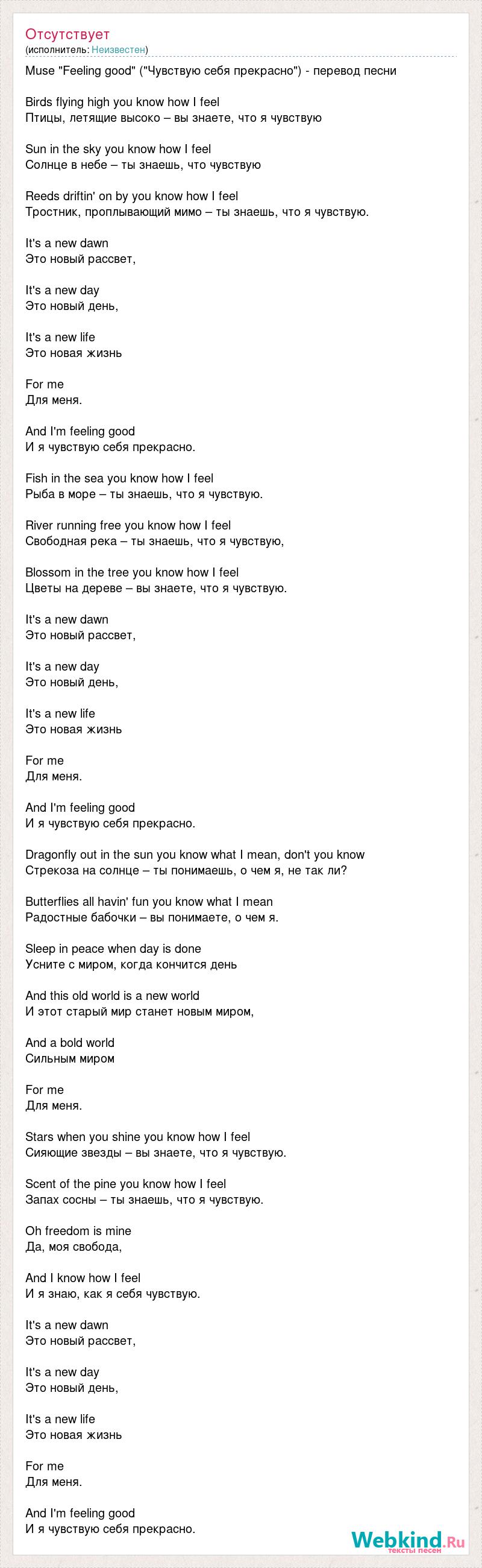 Muse "Feeling good" ("Чувствую себя прекрасно") - перевод пе