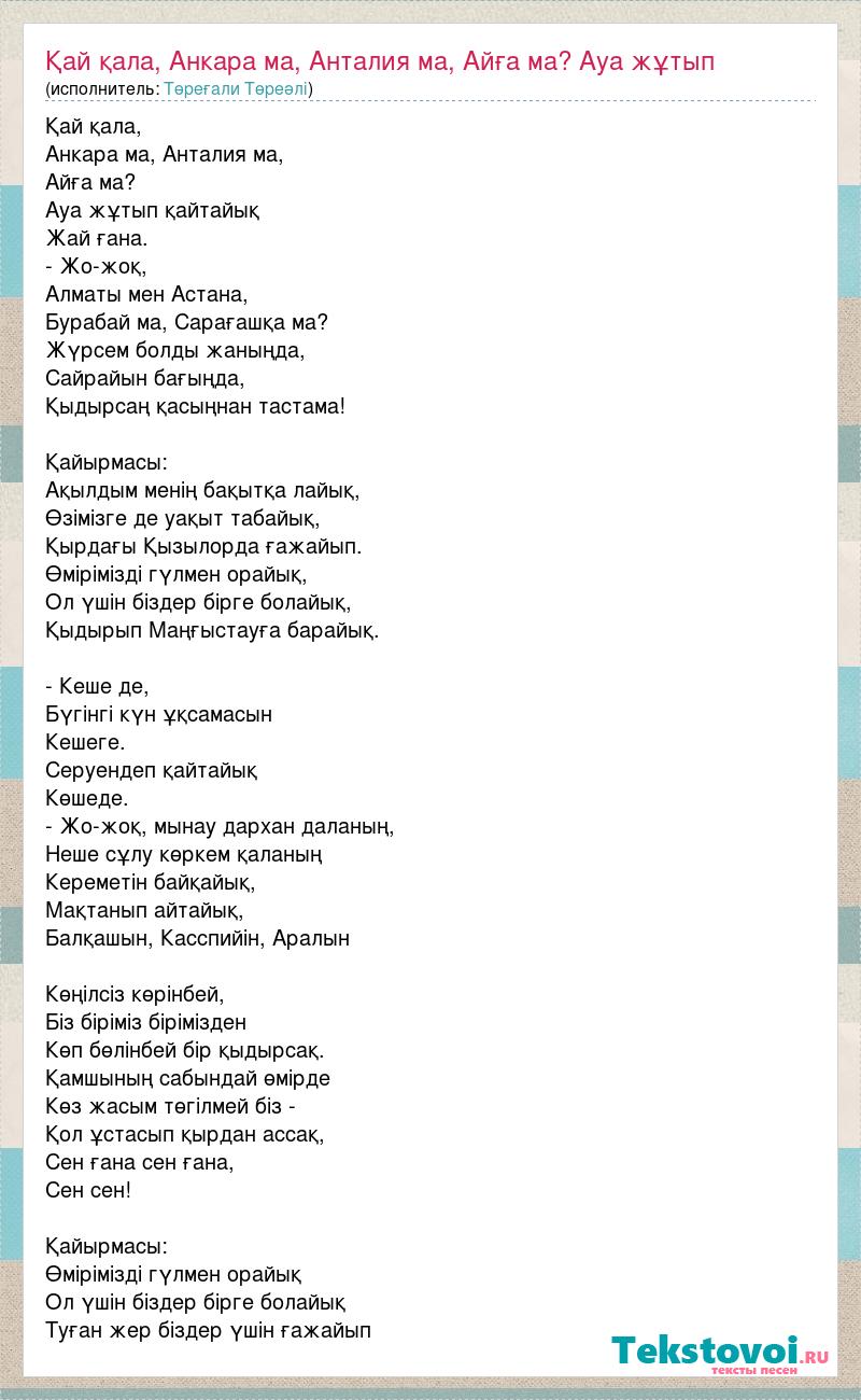 А как ты думаешь, о чем песня "Қай қала, Анкара ма, Анталия ма, Айға ма? Ауа жұтып" ?