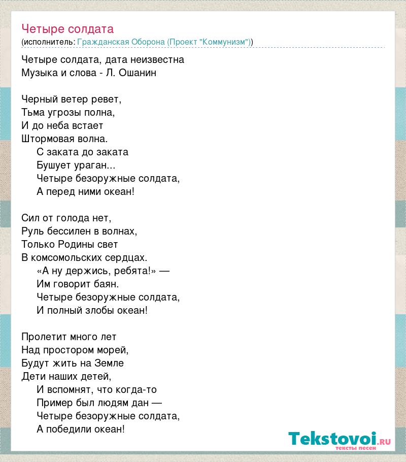 А как ты думаешь, о чем песня "Четыре солдата" ?