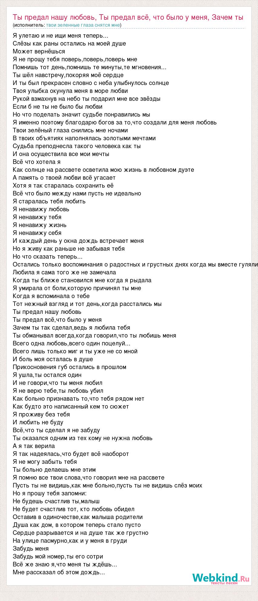 Главная→Исполнители→Твои зеленные глаза снятся мне→Ты предал нашу любовь, Ты предал всё, что было у меня, Зачем ты