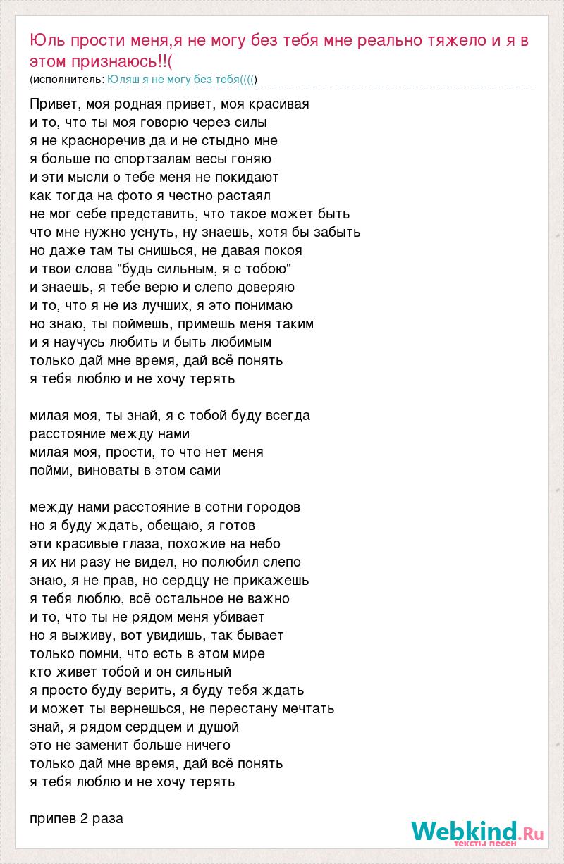 А как ты думаешь, о чем песня "Юль прости меня,я не могу без тебя мне реально тяжело и я в этом признаюсь!!(" ?