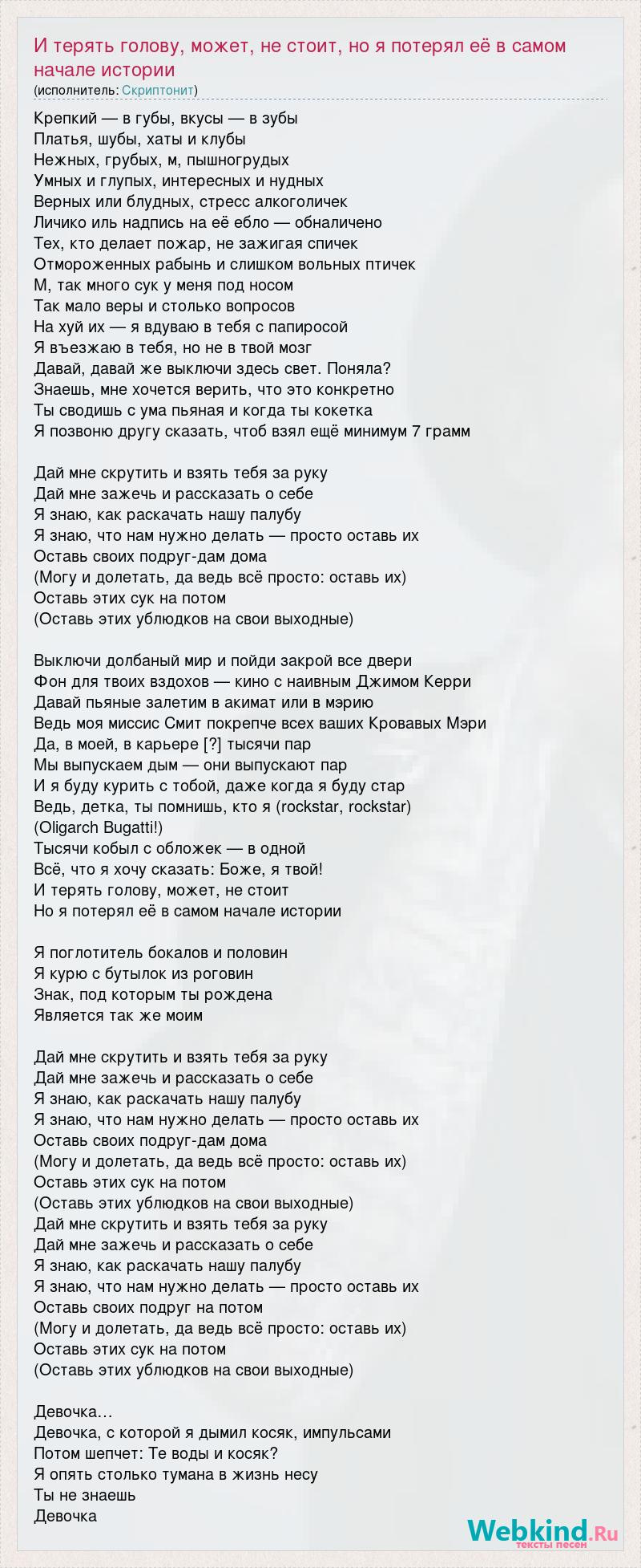 Главная→Исполнители→Скриптонит→И терять голову, может, не стоит, но я потерял её в самом начале истории