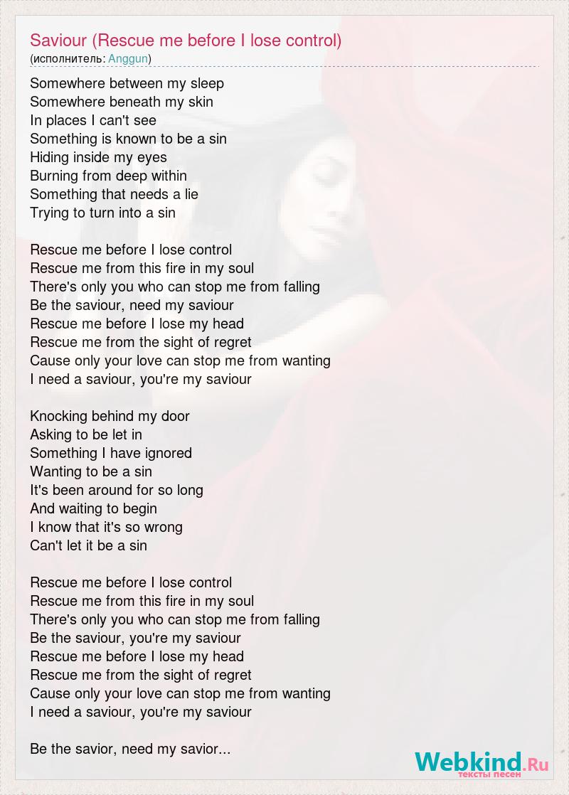 А как ты думаешь, о чем песня "Saviour (Rescue me before I lose control)" ?