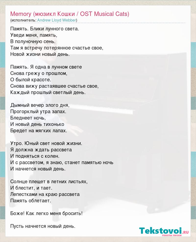 А как ты думаешь, о чем песня "Memory (мюзикл Кошки / OST Musical Cats)" ?