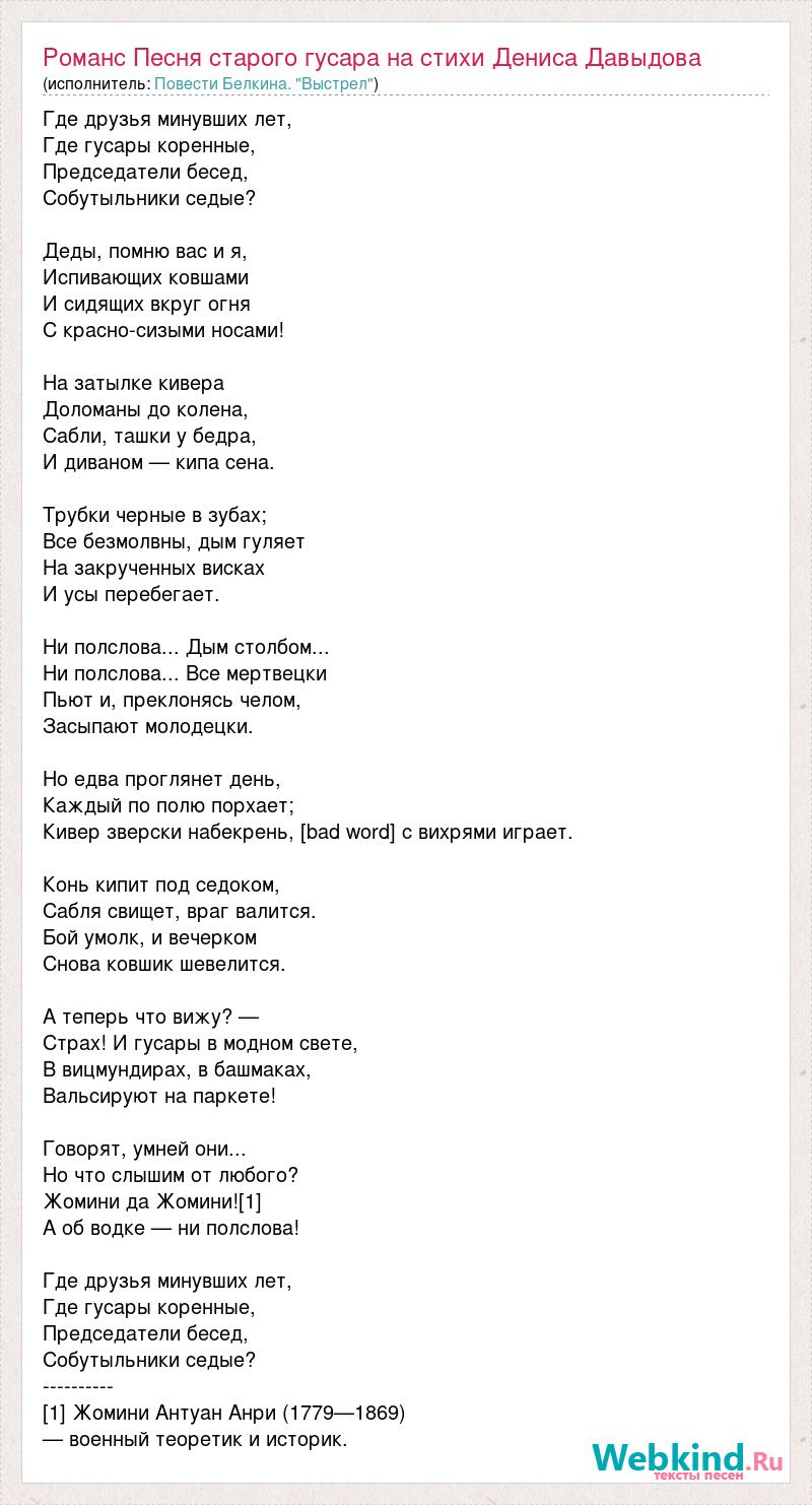 Романс Песня старого гусара на стихи Дениса Давыдова