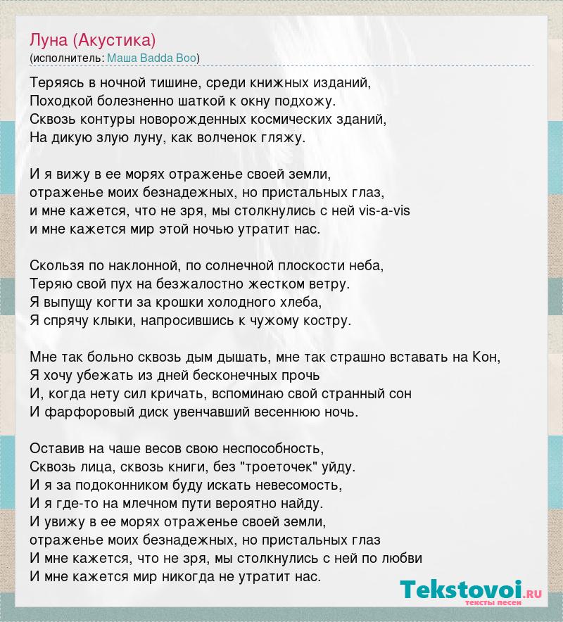 А как ты думаешь, о чем песня "Луна (Акустика)" ?