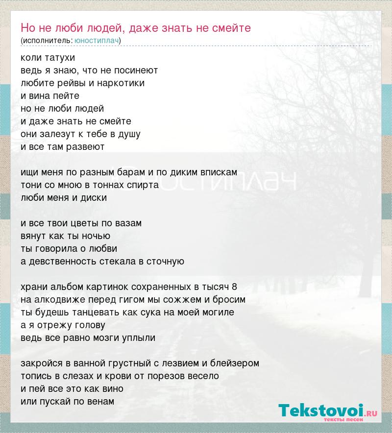 А как ты думаешь, о чем песня "Но не люби людей, даже знать не смейте" ?
