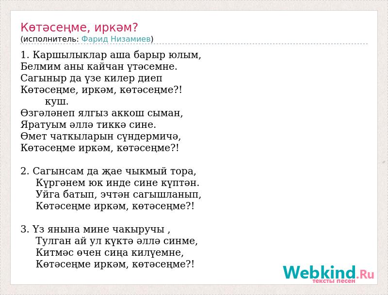 А как ты думаешь, о чем песня "Көтәсеңме, иркәм?" ?