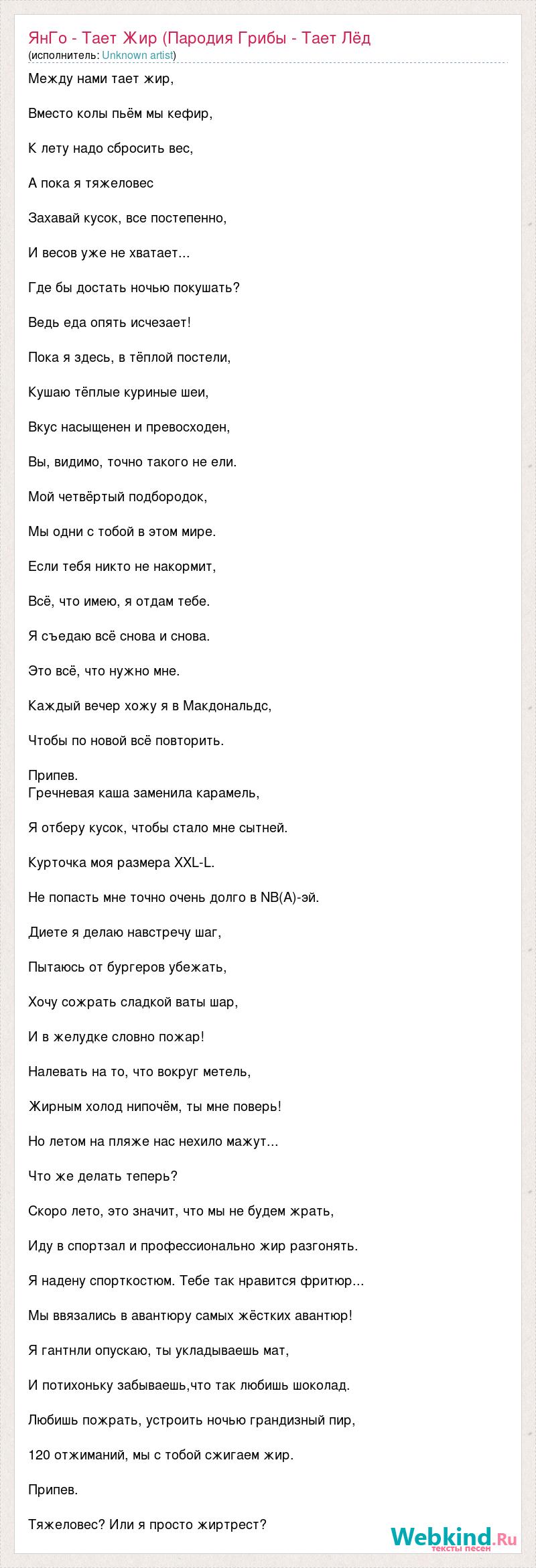 ЯнГо - Тает Жир (Пародия Грибы - Тает Лёд