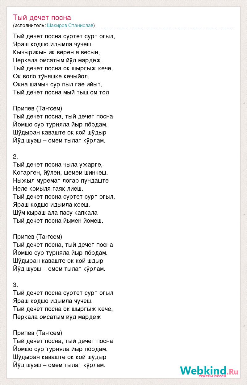 А как ты думаешь, о чем песня "Тый дечет посна" ?