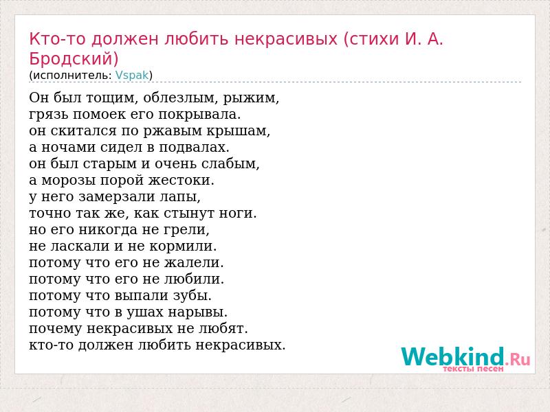 Кто-то должен любить некрасивых (стихи И. А. Бродский)