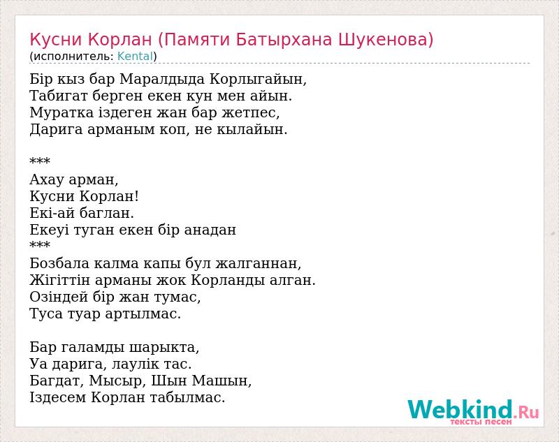 Кусни Корлан (Памяти Батырхана Шукенова)