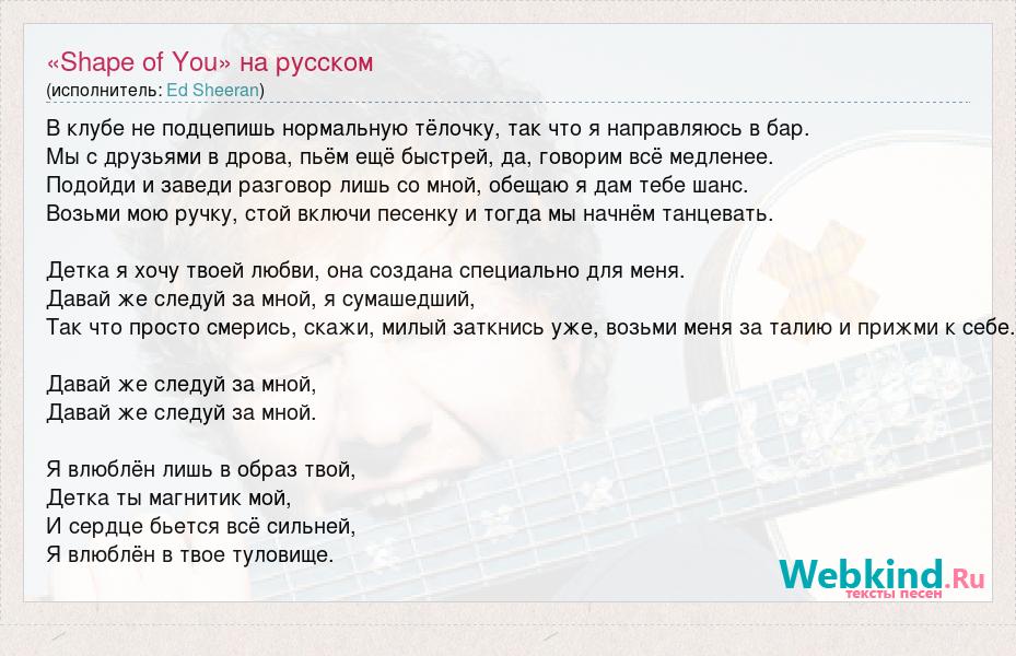 А как ты думаешь, о чем песня "«Shape of You» на русском" ?