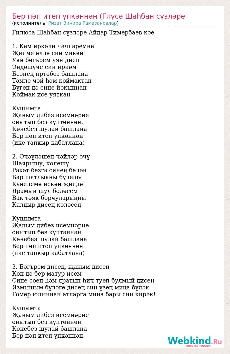 Бер пәп итеп үпкәннән (Глүсә Шаһбан сүзләре
