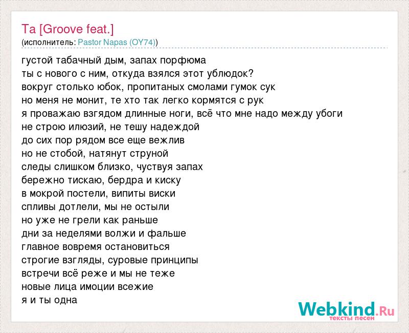 густой табачный дым, запах порфюма ты с нового с ним, откуда взялся этот ублюдок? вокруг столько юбок, пропитаных смолами гумок сук но меня не монит, те хто так легко кормятся с рук я проважаю взгядом длинные ноги, всё что мне надо между убоги не строю илюзий, не тешу надеждой до сих пор рядом все еще вежлив но не стобой, натянут струной следы слишком близко, чуствуя запах бережно тискаю, бердра и киску в мокрой постели, випиты виски спливы дотлели, мы не остыли но уже не грели как раньше дни за неделями волжи и фальше главное вовремя остановиться строгие взгляды, суровые принципы встречи всё реже и мы не теже новые лица имоции всежие я и ты одна