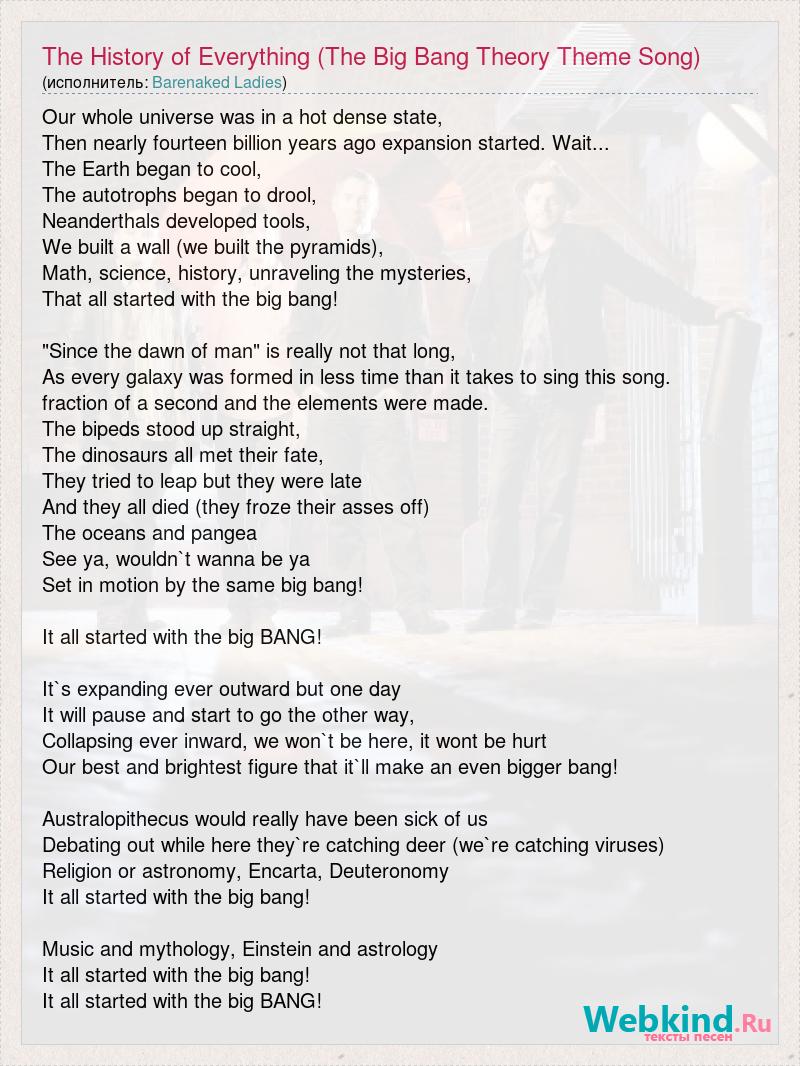 А как ты думаешь, о чем песня "The History of Everything (The Big Bang Theory Theme Song)" ?