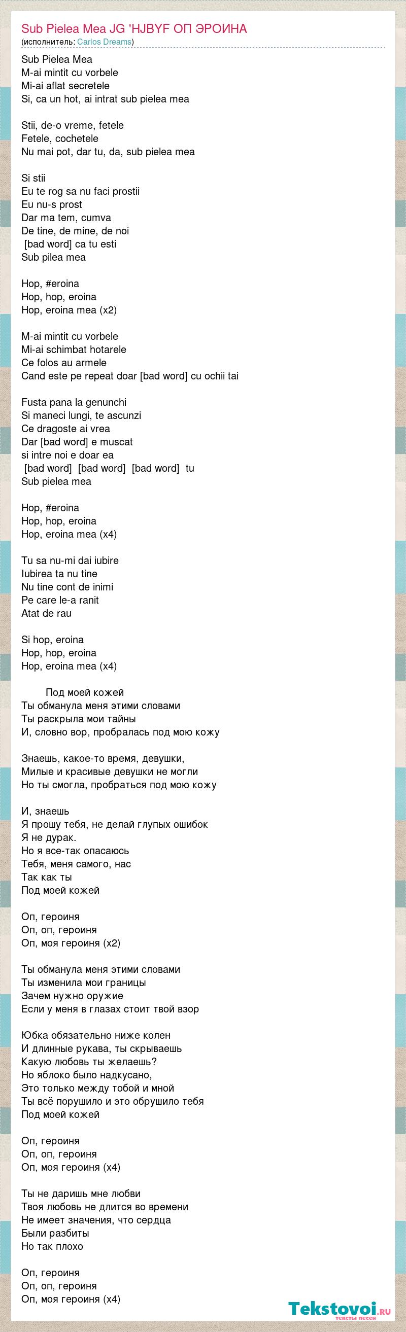 А как ты думаешь, о чем песня "Sub Pielea Mea JG 'HJBYF ОП ЭРОИНА" ?