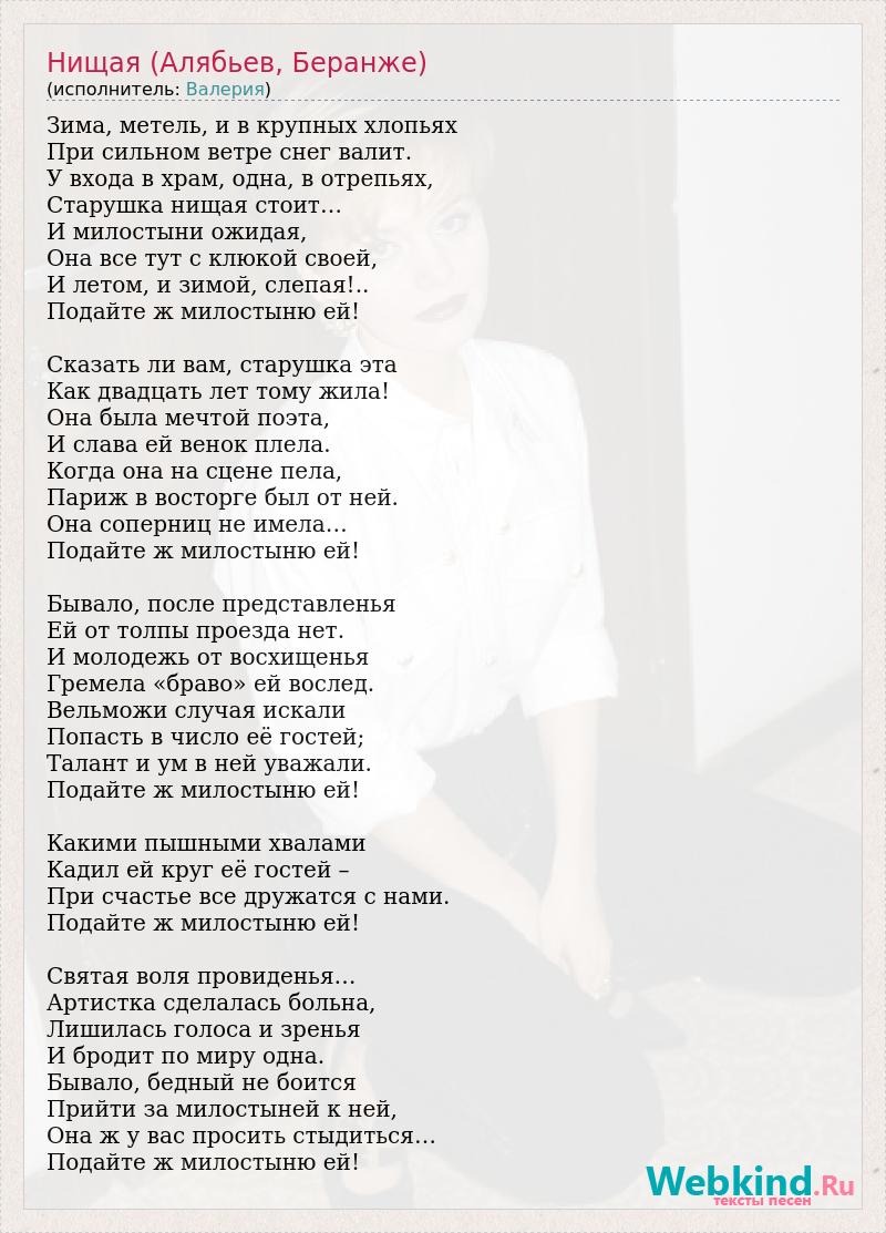 А как ты думаешь, о чем песня "Нищая (Алябьев, Беранже)" ?
